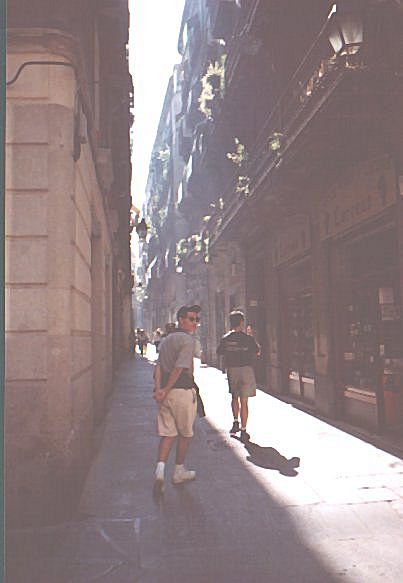down the streets of Barcelona at 3 PM with all the stores closed (where